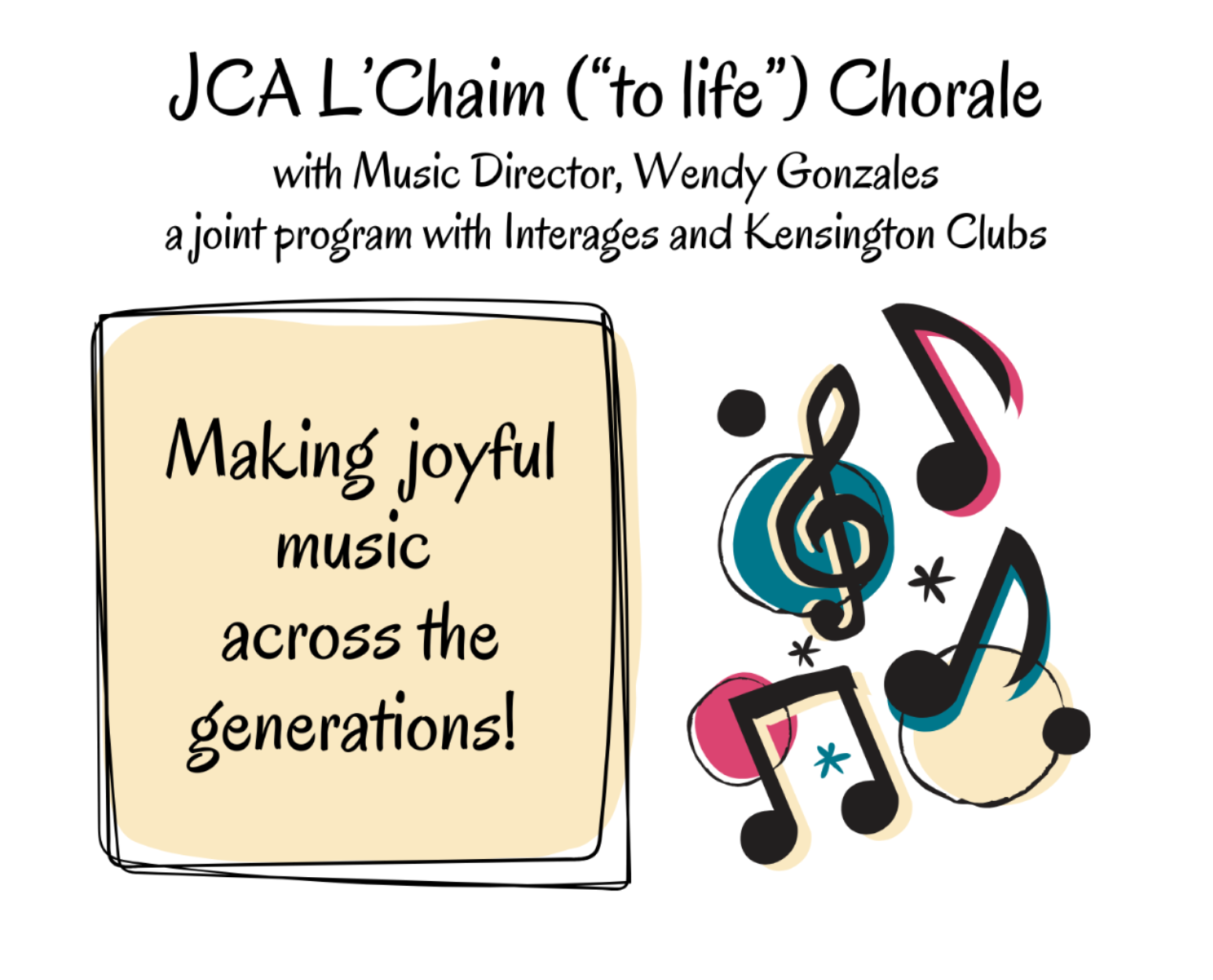JCA Interages® invites students to join the L’Chaim (“to life”) Chorale and make joyful music across the generations! The chorale will be comprised of student volunteers and members of the JCA’s Kensington Clubs, a social day program for older adults diagnosed with early-stage memory loss. Songs will be chosen from a variety of genres, including musical theater, spirituals, and Jewish music.