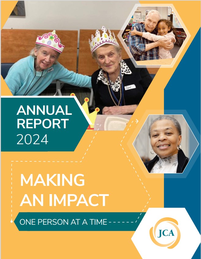 Learn about the ways JCA makes an impact, one person at a time. In the past year we have seen a 26% increase in the number of people served and a 37% increase in calls to the Senior HelpLine. “More than 50 highly skilled team members and hundreds of volunteers make it possible for JCA to serve older adults. Some are struggling physically, emotionally, and financially and turn to JCA to identify services that can assist them. Others are seeking connections and engagement through employment, volunteering, and other pathways that will lead them to purposeful activities,” says outgoing board president, Ronna Borenstein-Levy