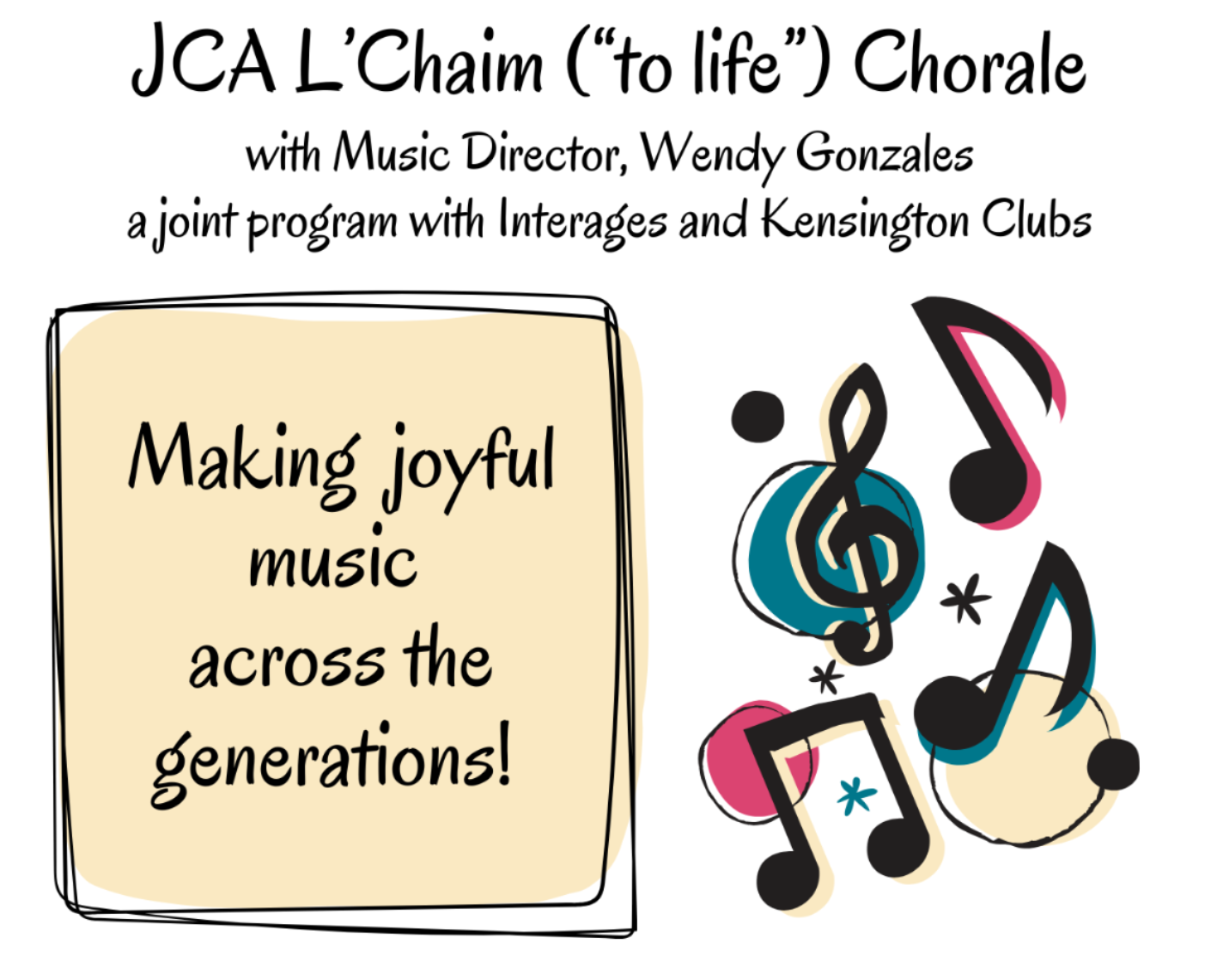JCA Interages® is currently recruiting student singers and one accompanist of any age to join Kensington Club members for the JCA’s first intergenerational Chorus. Participants from all backgrounds will learn songs from a variety of genres including musical theater, spirituals, and Jewish music. No experience or audition is necessary. Tuesday afternoon rehearsals will begin on January 14 and a performance is scheduled for February 23.
